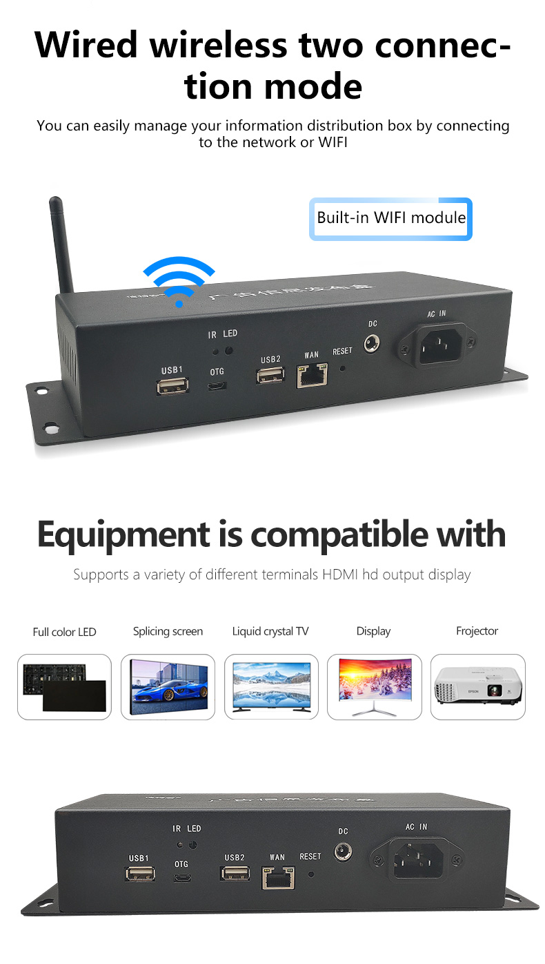 - Product model: XTA3288UP Multimedia TV advertising player information release box remote control split screen Android system horizontal screen vertical screen store unified release of the playback box 4K 2+16