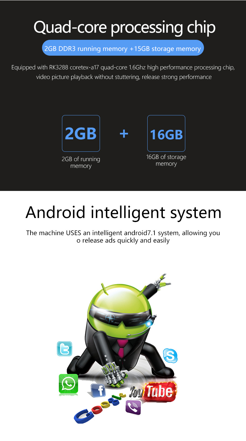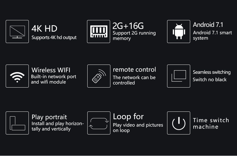 - Android system; 4K 2+16; horizontal screen and vertical screen