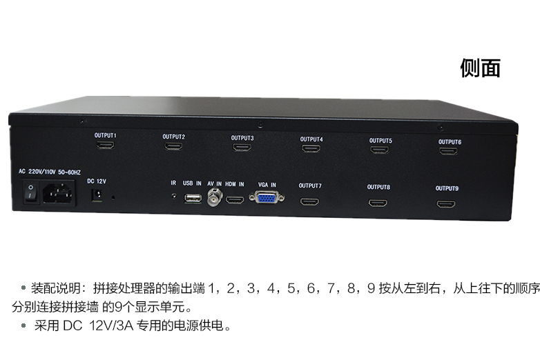 • 1進9出電視拼接器顯示器拼接處理器USB VGA HDMI高清電視機拼接