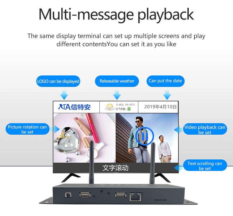 Multimedia TV advertising player information release box Remote control Split screen Android system Horizontal screen and vertical screen Store unified release box