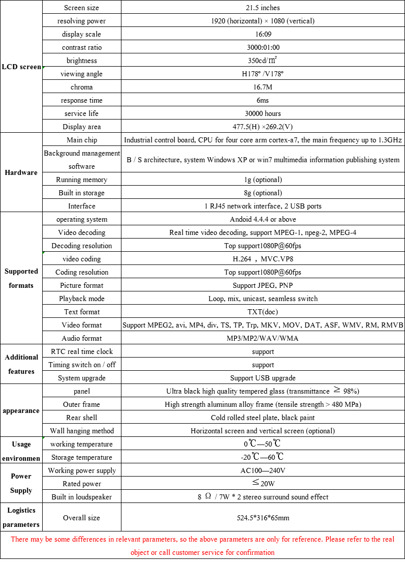 - Features:1. Multi-language menu, easy to operate and simple2. Ultra-thin and ultra-light design of aluminum alloy frame, easy to use, beautiful appearance3. Adopt the latest 3D digital decoding and image noise reduction technology4. It has the function of automatically eliminating residual image to protect the long-term use of the LCD screen5. Various digital image correction circuits with minimal image distortion6. 16.7M colors, the picture is more natural and delicate7, 8ms extremely fast response time, the picture truly has no tailing.8. Built-in power supply, low power consumption, longer LCD screen service life9. Equipped with a sensitive infrared receiver, which can remotely adjust the parameters of the display10. All-metal shell structure design, strong electromagnetic shielding, no radiation