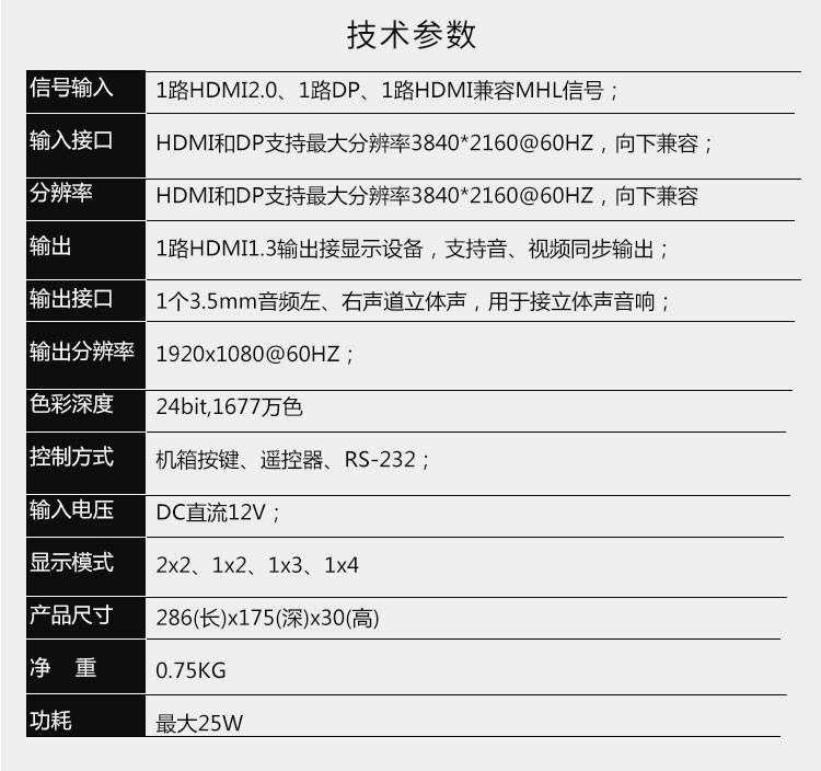 • 產(chǎn)品特點(diǎn):4K信號輸入支持 HDMI、MHL、DP輸入