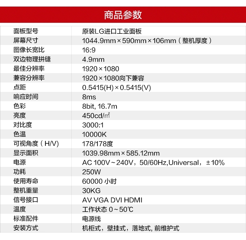 LG47寸液晶拼接屏 雙邊拼縫4.9mm